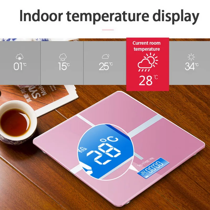 -18 функций измерения состава тела-с био-электрической технологией анализа импеданса (BIA), беспроводная цифровая шкала не только показывает вес тела, но и синхронизирует данные в вашем приложении, включая жир, вода, мышечная масса, ИМТ, костная масса, белок, скелетные мышцы и другие данные. Это помогает вам четко знать больше данных о вашем теле во времени и легко отслеживать на вашем телефоне.