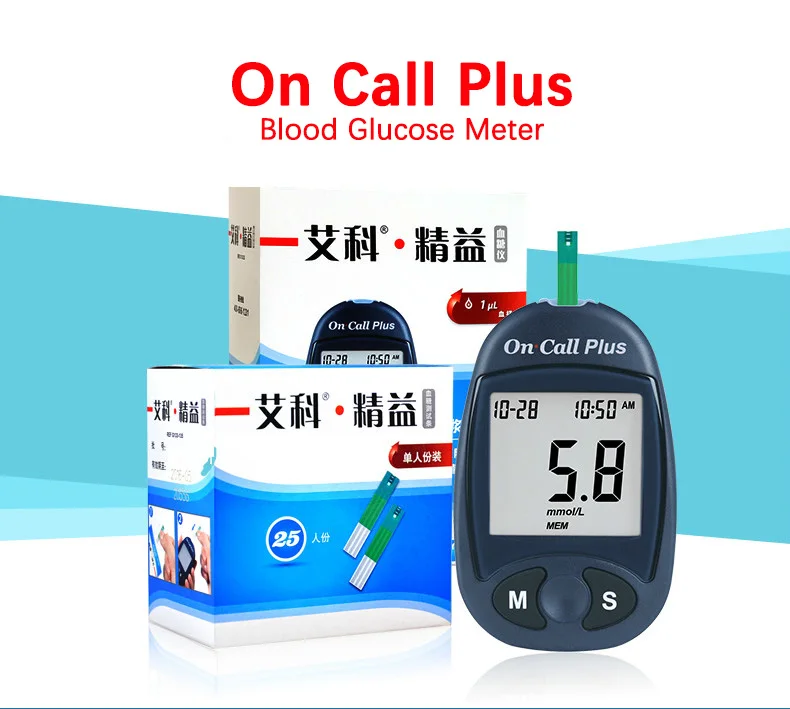 Глюкометр On Call Plus для измерения уровня сахара в крови при диабете, тест-полоски и ланцеты с иглами, медицинский измеритель уровня сахара в крови при диабете