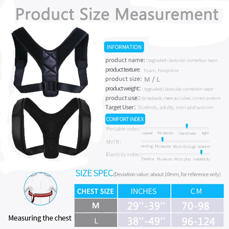 Универсальный размер, легко носить, без помощи, вы можете снять и носить корректор позы самостоятельно