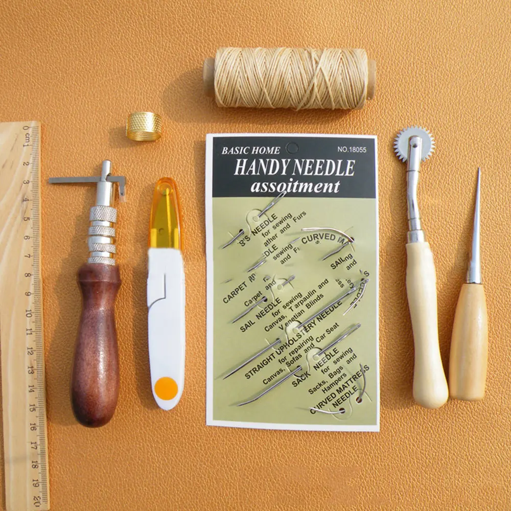 Список продуктов: 1 набор кожаных инструментов (1 Груп, 1 набор кожаных игл, 1 гребное колесо, 1 awl, 1 наперсток, 50 метров кожаной круглой проволоки 1 Ось, 1 цвет нарезки пряжи)