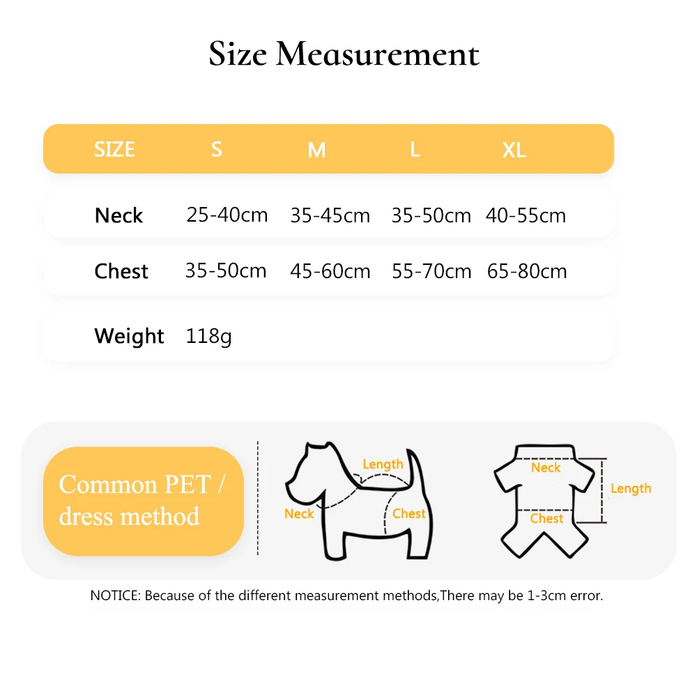 S: обхват шеи 25-40 см, обхват груди 35-50 см