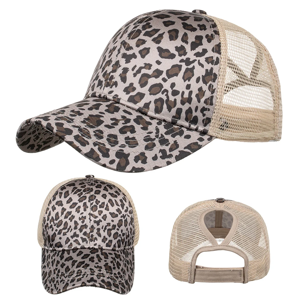 Женская летняя шапка с леопардовым принтом, анти-УФ шапка с отверстием для хвоста, спортивная бейсболка для спорта на открытом воздухе