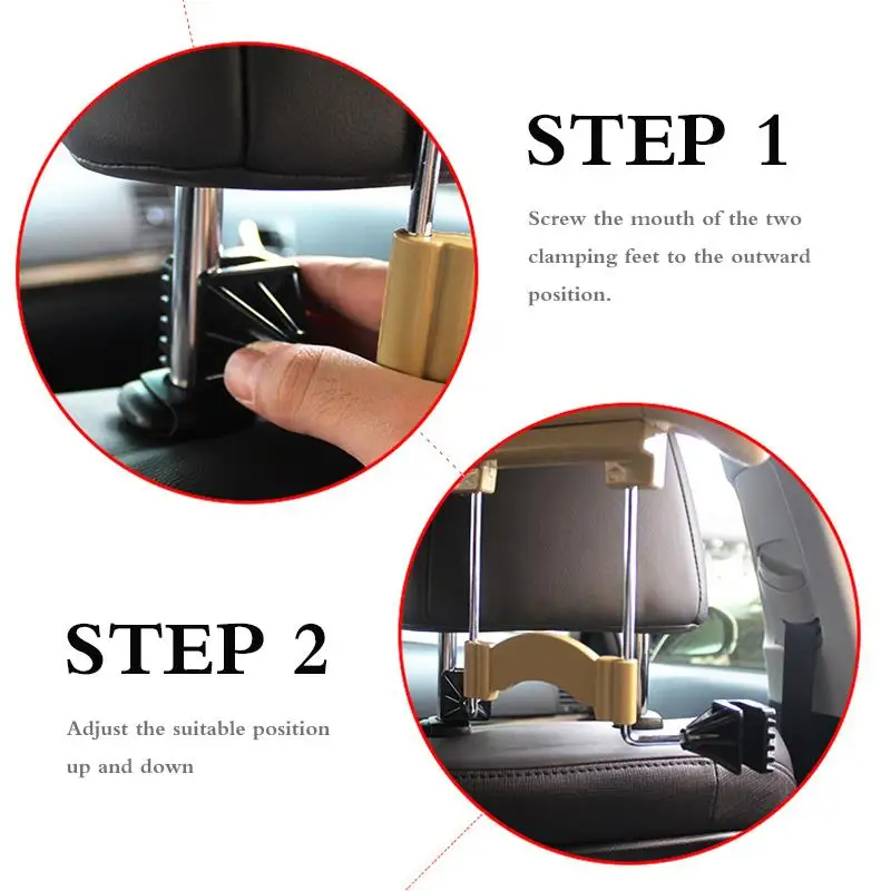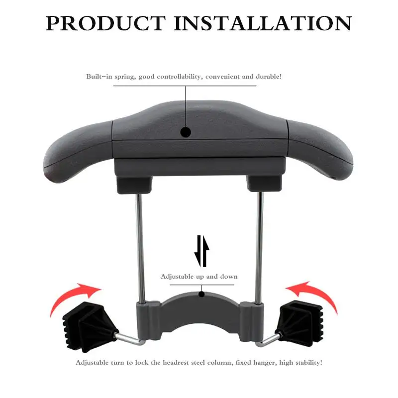 Простота установкиНе нужно снимать подголовник, он крепится к стальной колонне подголовника автомобиля. Он совместим с различными моделями, включая автомобили, коммерческие транспортные средства и внедорожные транспортные средства.