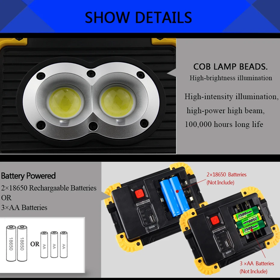 Отзывы о Фсветильник светодиодный рабочий 20 Вт портативный фонарь Cob с перезаряжаемой