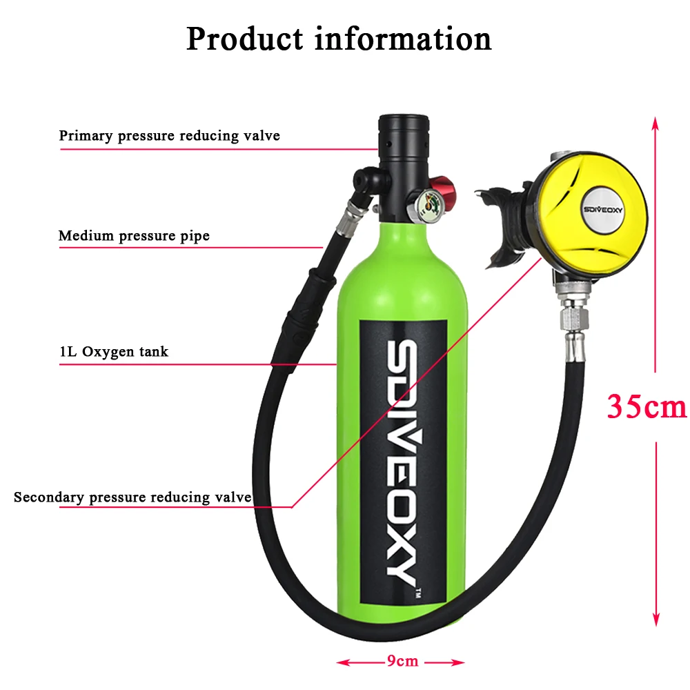 1. Кислородная бутылка 1L может позволить ныряльщику оставаться под водой в течение 20 минут, что зависит от личной жизненной мощности и глубины погружения.