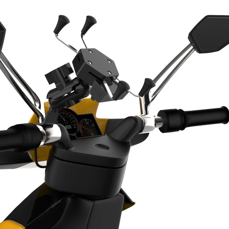 Вращающаяся на 360 градусов конструкция позволяет настроить дисплей в наиболее удобное положение. Удобная установка на различные мотоциклы, никаких инструментов не требуется. Имеет usb-порт и кабель, очень удобный для зарядки мобильных устройств. Компактный и легкий дизайн.