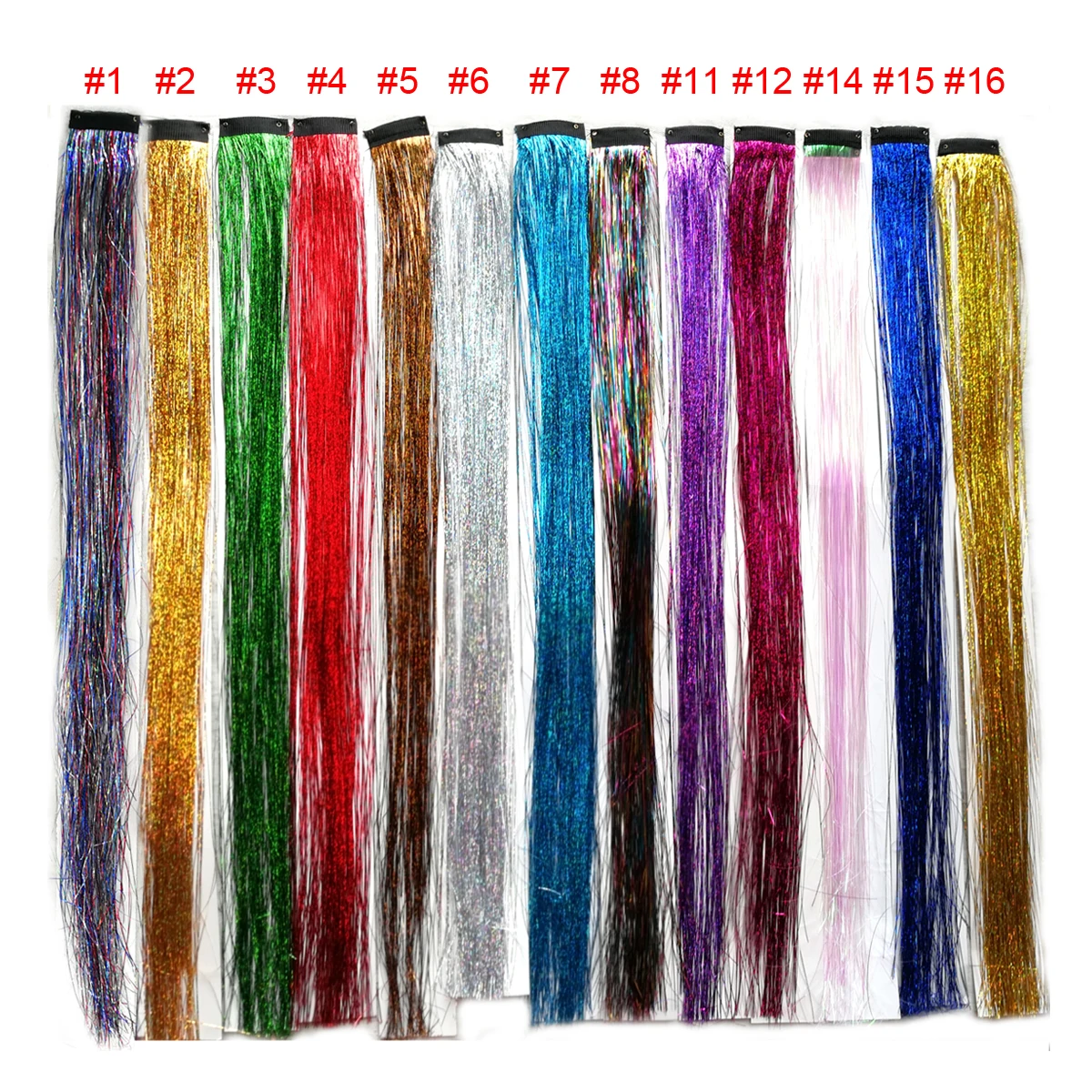 1 шт 13 цветов 45 см Блестки для волос с BB клипсой в сверкающем наращивание волос легко прикрепить модные блестящие аксессуары для волос для женщин