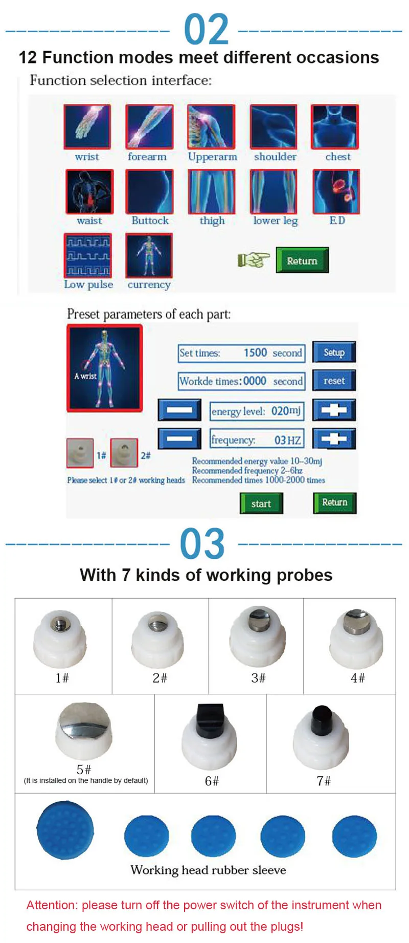 ПринципЭлектромагнитность: импульсный ток высокого напряжения, проходящий через катушку, создает магнитное поле, затем толкает движение диафрагмы для создания ударных волн, он будет фокусироваться на плоской траектории, или разбросаны по телу и сделают соответствующее лечение-Облегчение болиSkockwave нацелен на пораженные районы, которые являются источником хронической боли. Влияние ударных волн приводит к растворению отложений кальция и улучшает васкуларизацию. Послеоперационный эффект Облегчает боль.-- Клеточный: Увеличение пропускания клеточного мембрана за счет улучшения активности ионных каналов, стимуляции деления клеток, стимуляции производства клеточных цитокинов-- Размножение сосудов в области сухожилий и мышц: улучшение кровообращения Повышение концентрации фактора роста beta1, химотаксическое и митогенное воздействие на остеобласты-- Воздействие на систему оксида азота: заживление и Ремоделирование костей-- Улучшение микроциркуляции и обмена веществ-- Растворение кальцифицированных фибробластов-- Поддерживает выработку коллагена-- Уменьшает натяжение ткани-Обезболивающий эффектПрименение:1. Боль в плечах, кальцифический тендинит2. Радиальный или локтевой гумерный эпикондилит3. Трохантерический тендинит4. Боль в пояснице или корме5. Тендинит на коленях6. Синдром большеберцового стресса7. Ахиллодиния8. Подошвенный Фасцит9. Обработка ED10.Сертификат CEПараметры продуктаНазвание продукта: электрическая Ударная Волна V80-BЦвет: белыйНапряжение: AC110V-220VЧастота: 50 Гц/60 ГцМощность: 200 Вт макс.Ток: 3 А макс.Передача выходной частоты: 16Выходной уровень: 27Регулировка количества ударов: 5Количество рабочих щупов: 7Размер инструмента (включая аксессуары): 370*300*200 ммПосылка: 460*435*345 ммВес нетто: 4,662 кгВес брутто: 6,093 кг