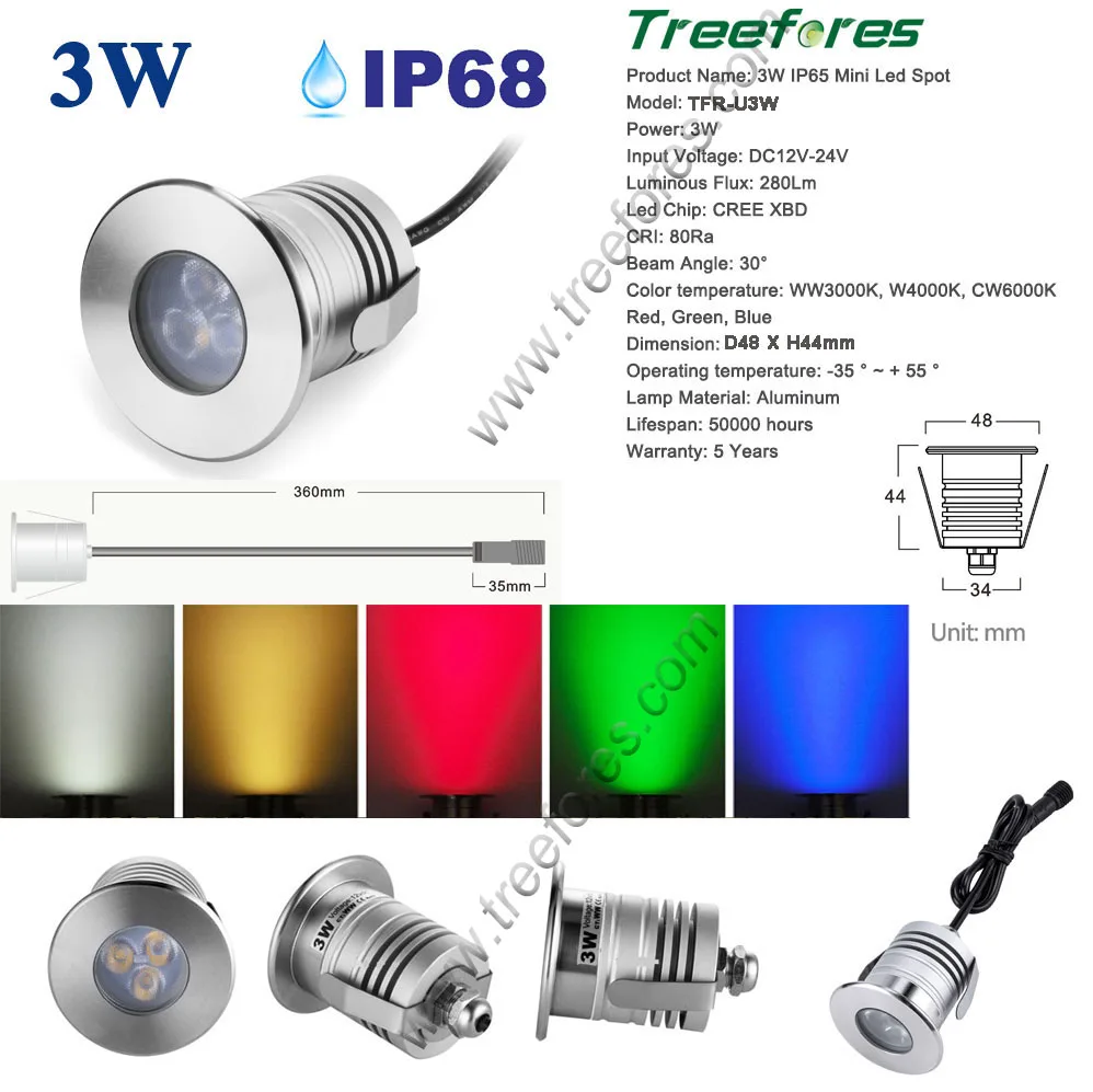 3W 12V-24V светодиодный светильник для потолка из IP68 спа Ванная комната наружного освещения сада 3 Вт прожектор лампы для настенная колода карт прожектор CE