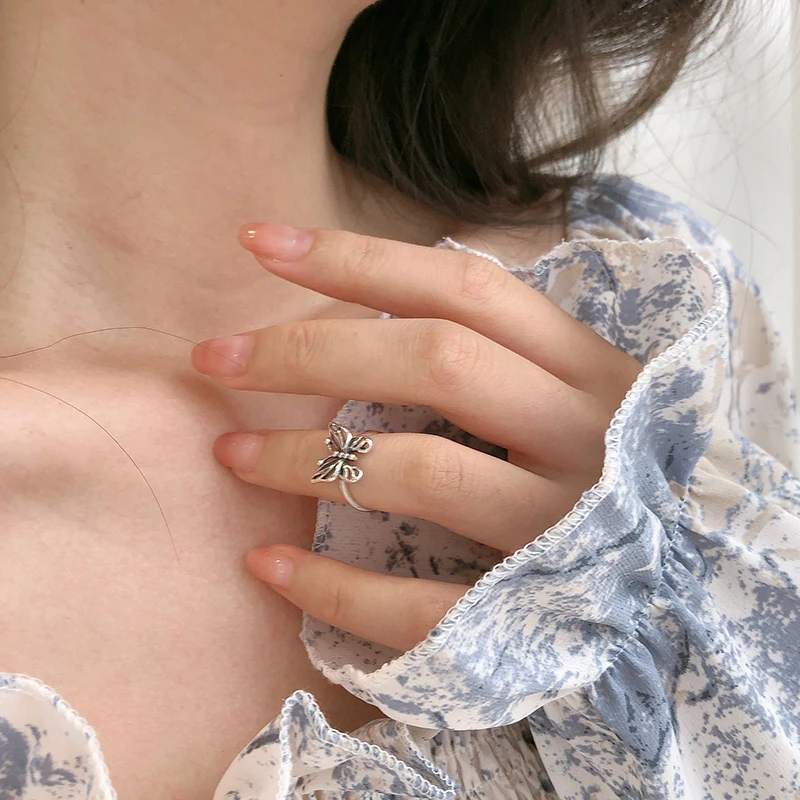 Отзывы о Kinel Настоящее серебро 925 пробы винтажные Регулируемые кольца с бабочками для