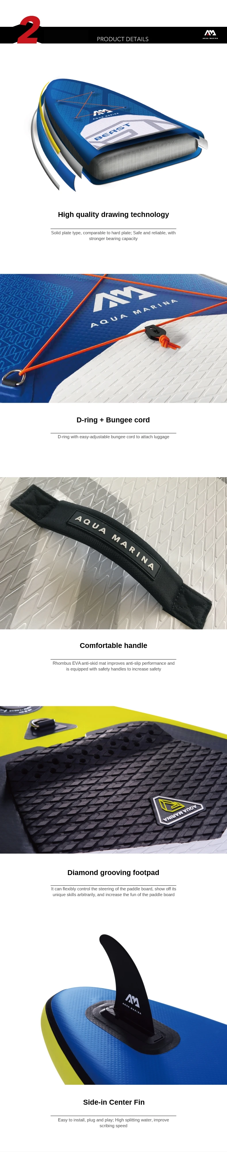 • Легкая технология стежка • Полноэтажная и базовая качественная печать и рельсовая конструкция для превосходной оптики • Съемный сползающий центральный плавник • Интегрированное D-кольцо карго с легким регулируемым шнуром банджи для крепления багажа • Удобная ручка из неопрена • Накладка на заднюю часть для поворотов и обрезания критического дна • Алмазная рифленая стелька для максимального сцепления и комфорта • Из 3 предметов Регулируемый Алюминий Весло • Насос двойного действия для Аква-Марины для быстрой и легкой надувания