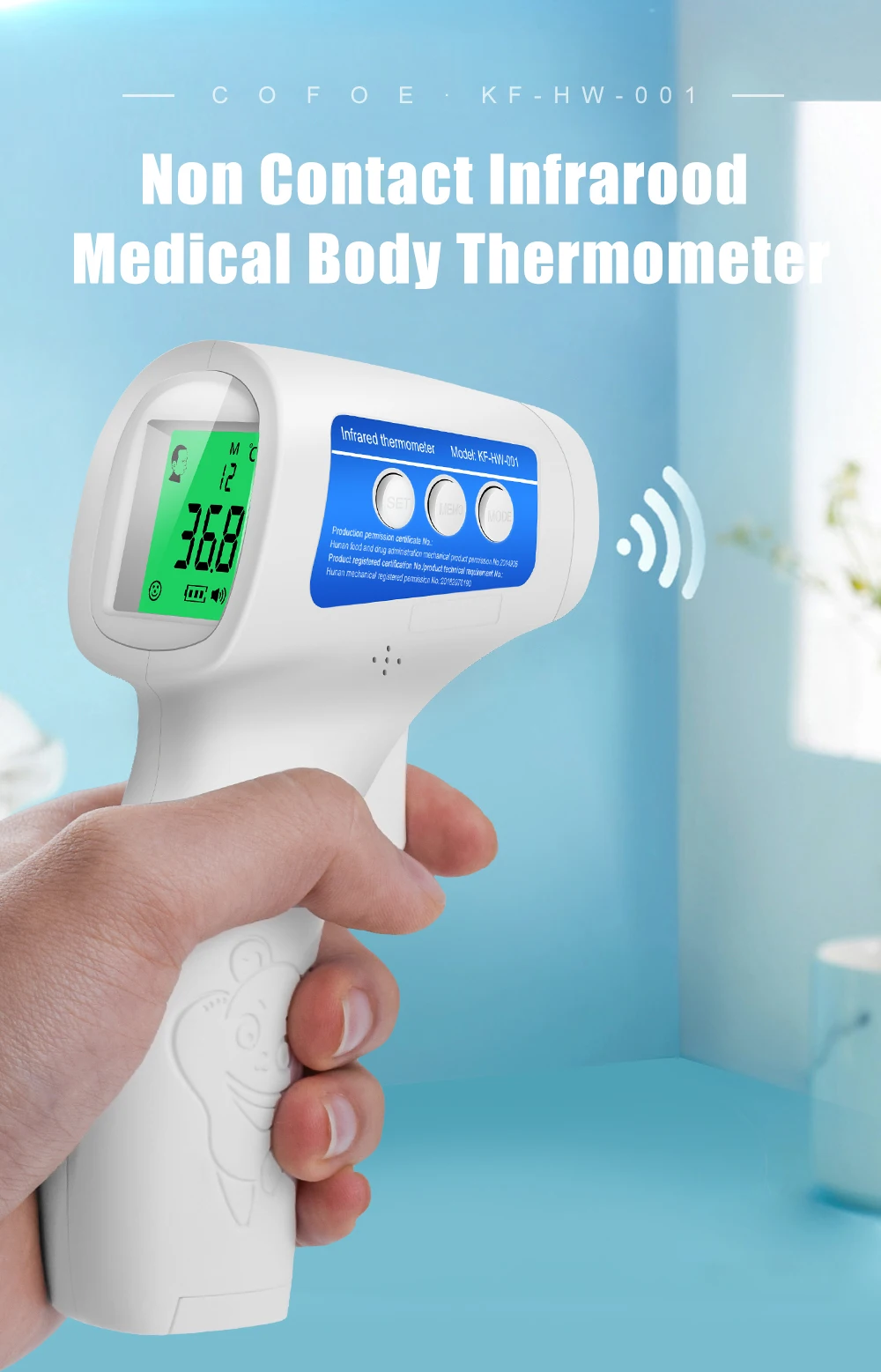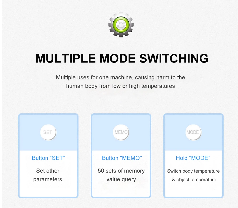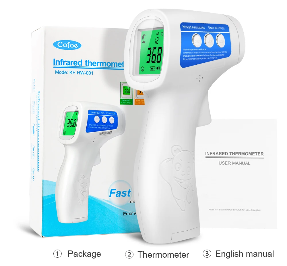 ♣Четыре варианта на выбор:Вариант 1: термометр китайской версии + Модернизированный оксиметрВариант 2: термометр с английской версией + Улучшенный оксиметрВариант 3:Китайская версия термометрВариант 4:Модернизированный и уровня кислорода в крови♣Термометр преимущества:1. Немецкие прецизионные зонды, точность ± 0,2 ℃.2. Только 1s может измерить тело3. Три цвета, чтобы сообщить температуру: зеленый-нормальный оранжевый-небольшая температура красный-высокий4. Две модели: модель тела (температура тела); Модель объекта (вода, молоко, температура еды и так далее5. Избегайте касания кожи, удобно измеряйте температуру ребенка6. Хранение 50 комплектов7. Автоматическое включение8. Может переключаться ℉/℃♣Оксиметр Особенности:① Может точно измерять скорость SpO2 и пульса② Дисплей SpO2 и частоты пульса, отображение штрих-графа③ Индикация низкого напряжения батареи④ Автоматическое отключение при отсутствии сигнала♣Примечание: