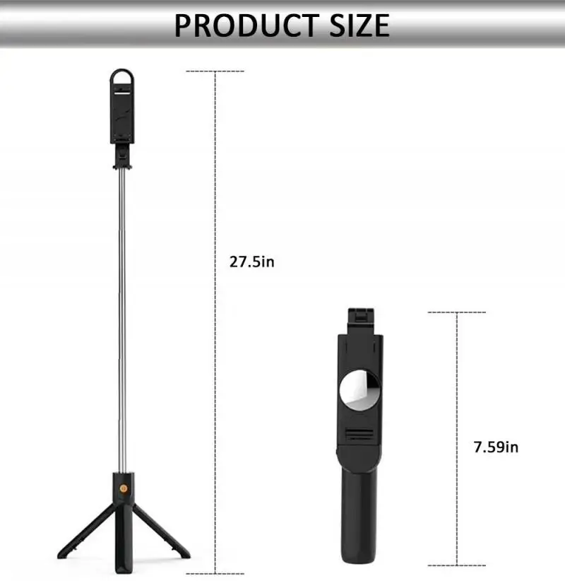 Selfie rod can be stretched up to 700mm, the shortest can be contracted to 190mm.