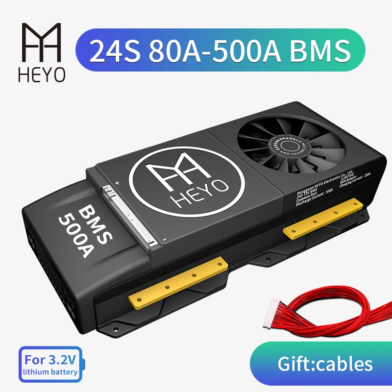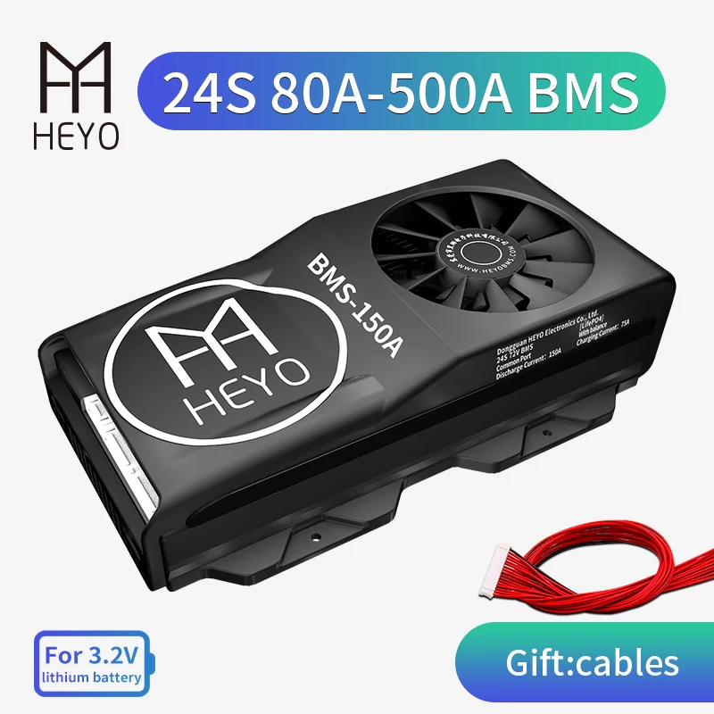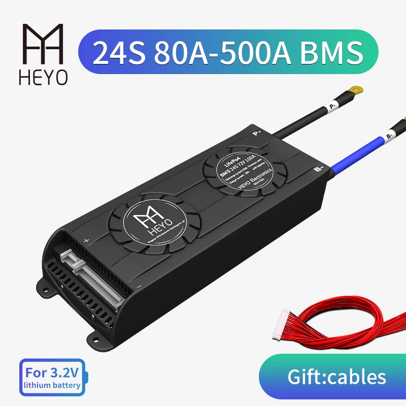 HEYO 3,2 V LiFePo4 Lipo 24S 72V 80A 100A 150A 200A 250A 300A 400A 18650 Защита аккумулятора BMS с небольшим балансом вентилятора того же порта