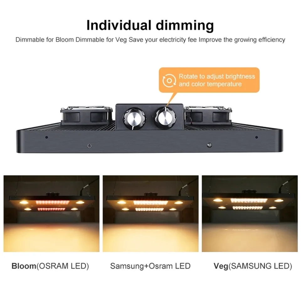 Диммируемый светодиодный светильник полного спектра Osram 600 Нм, ультратонкий бесшумный для внутренней гидропонной установки Вт, имитация солнечной панели для