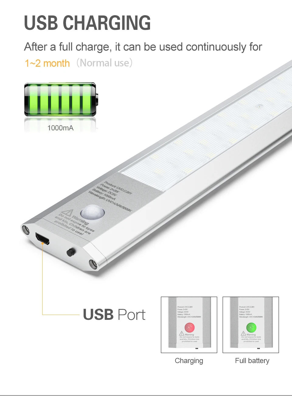Pir датчик движения шкаф светильник бактерицидный светодиодный светильник для шкафа светильник Usb под кровать светильник 30 60 см ультра-тонкий УФ стерилизация лампа