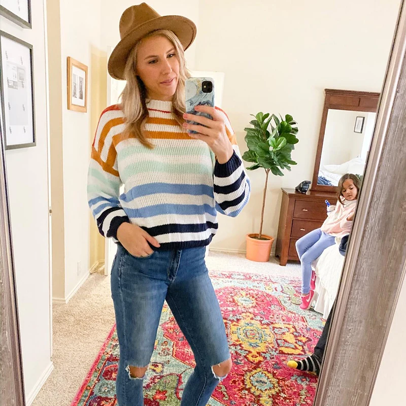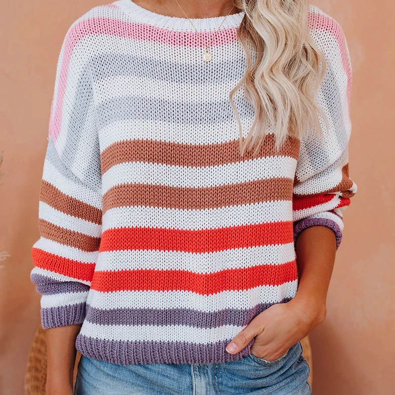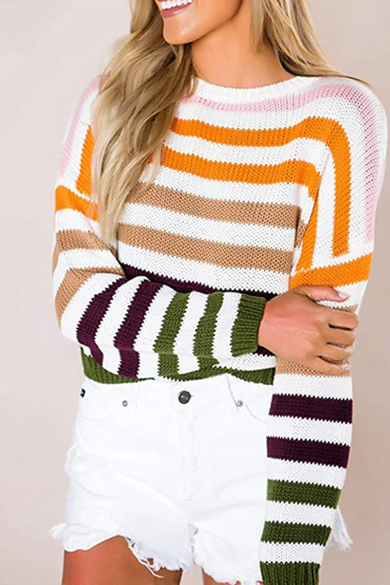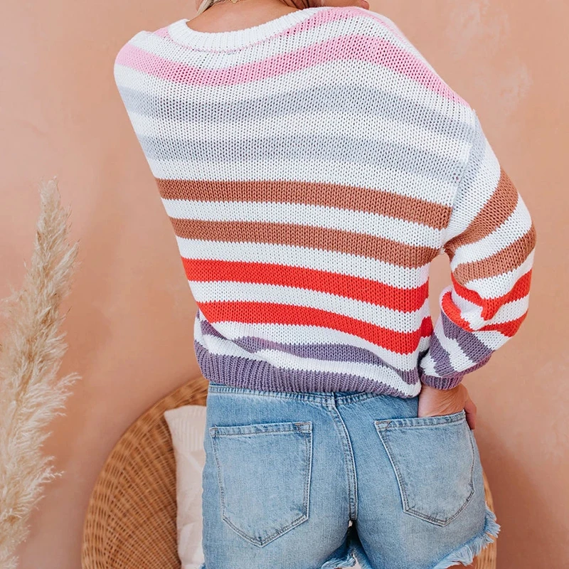 Отзывы о Женский пуловер в полоску Meyooe повседневный Трикотажный свитер с длинным рукавом