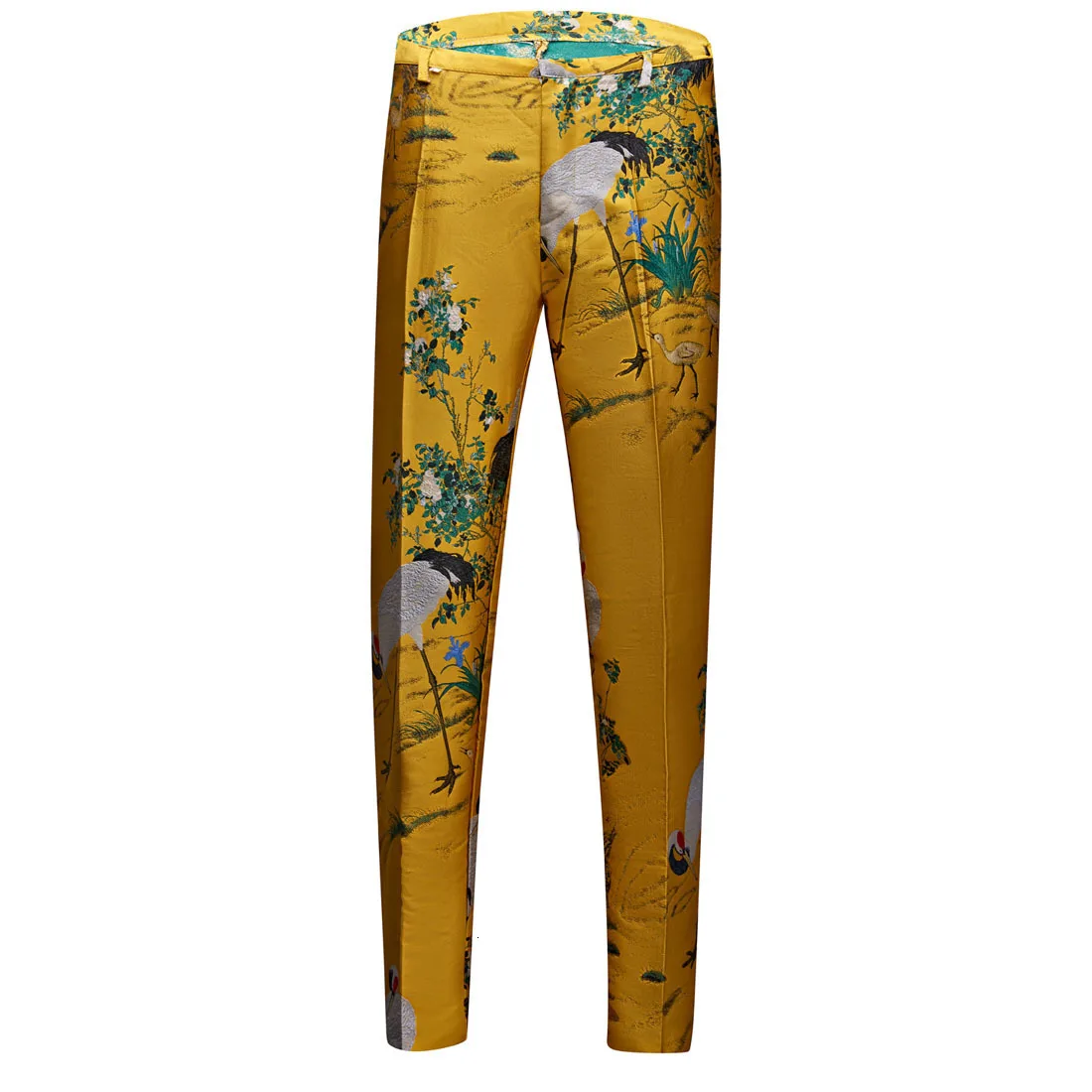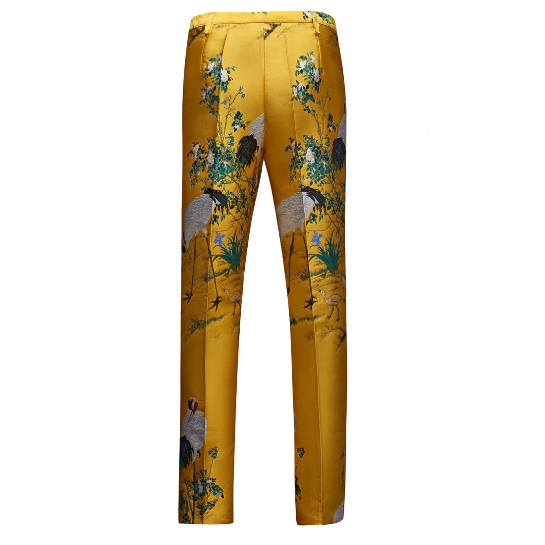 Отзывы о PYJTRL мужские модные жаккардовые брюки с золотым и желтым узором костюмы для