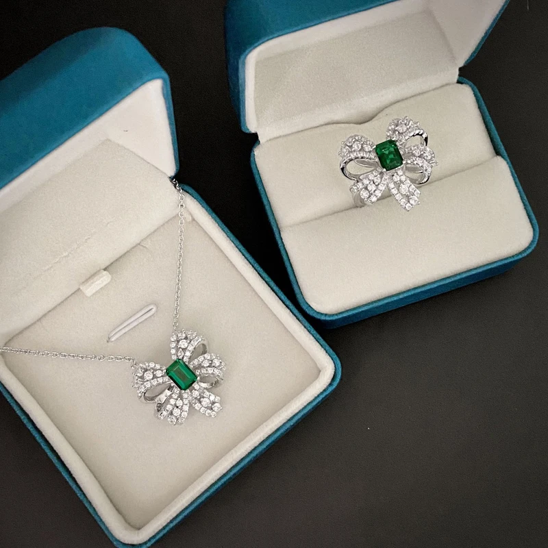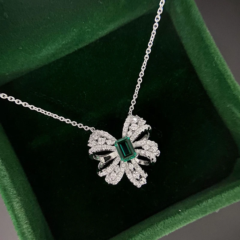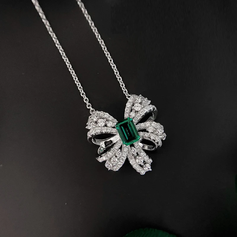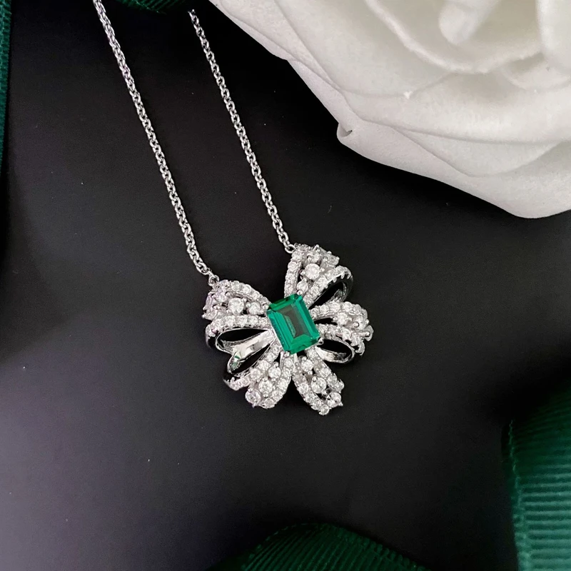 Отзывы о Женское колье с изумрудом OEVAS из серебра 100% пробы кулоном в виде банта
