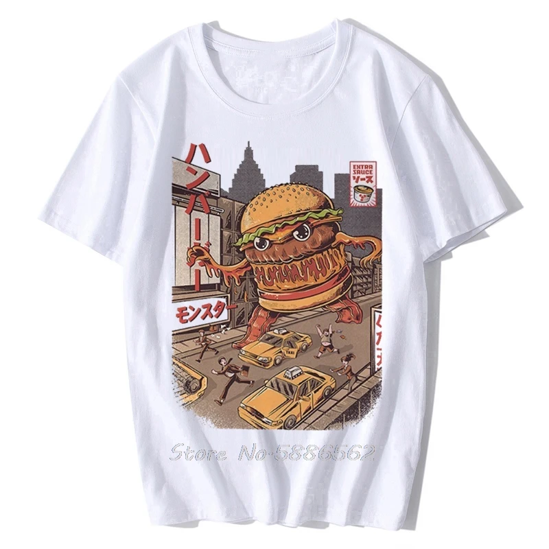 Отзывы о Япония Аниме гамбургер кайдзю бургерзилла забавная футболка Homme Jollypeach новая