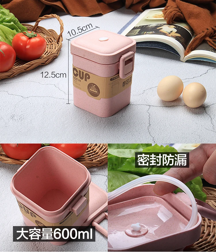 100% Новинка и высокое качество Легко носить с собой Здоровый и экологичный Гибкая конструкция замка Можно ставить в микроволновую печь для разогрева С утеплителем мешок может сохранять тепло в течение 2-3 часов. Характеристики: Материал: пшеничная солома, пищевой пластик PP (крышка) Размер ланч-бокса: 18,8x11,2x8,3 см, емкость: 900 мл Размер суповой чашки: 10,5 × 9 × 12,5 см, Емкость: 600 млЦвет: зеленый, розовый, бежевый