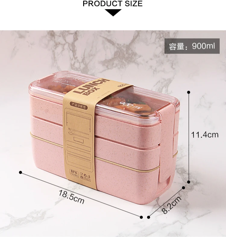 Трехслойный Ланч-бокс из экологически чистого материала, 900 мл, коробки бэнто из пшеничной соломы, посуда для микроволновой печи, контейнер для хранения продуктов, Ланчбокс