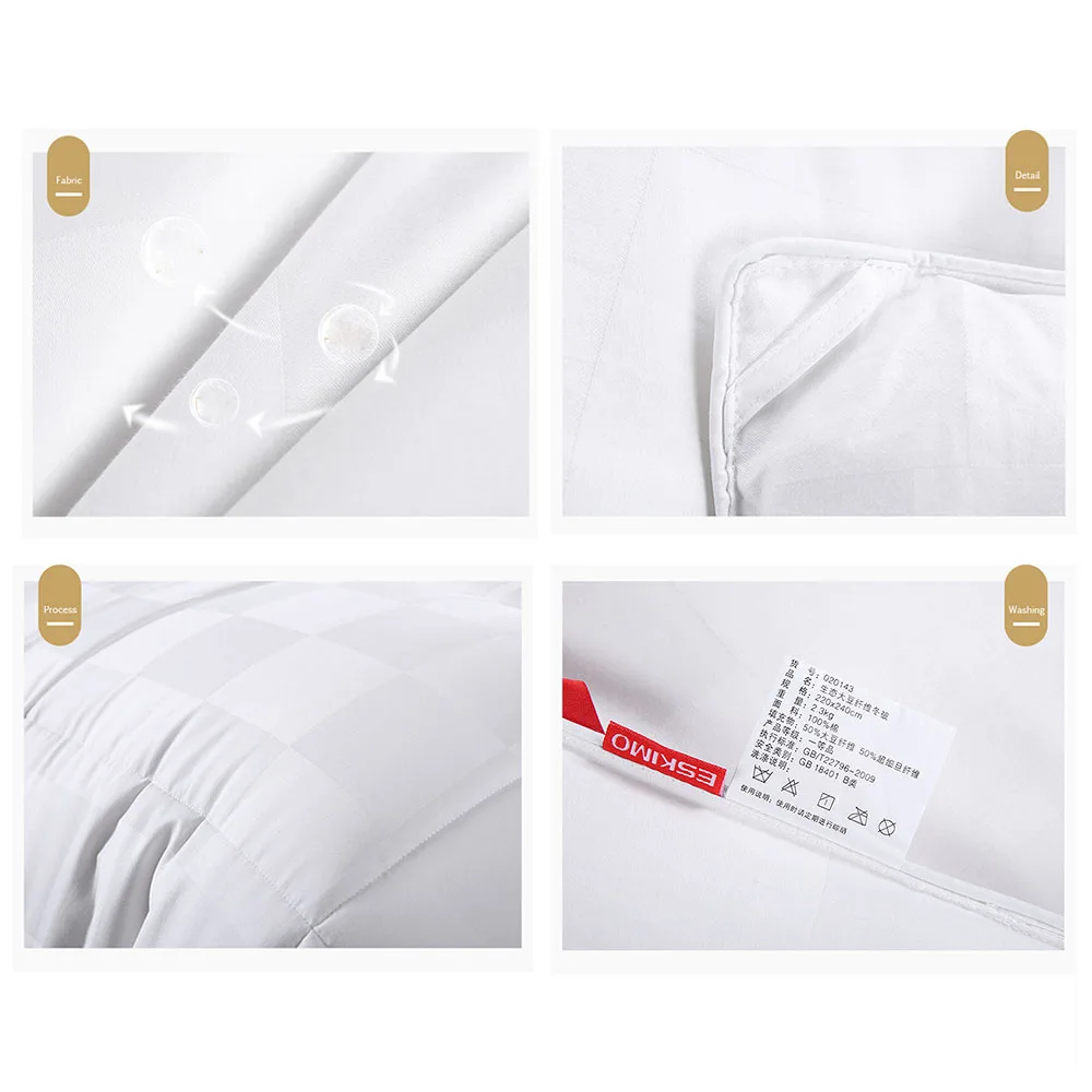 Brand: Eskimo Product Name: Soybean Fiber Moisturizing Quilt Core Model:Winter Product material: 50% soybean fiber and 50% ultrafine fiber Product fabric: Pure cotton. Specification Size: 150*210cm, 200*230cm, 220*240cm