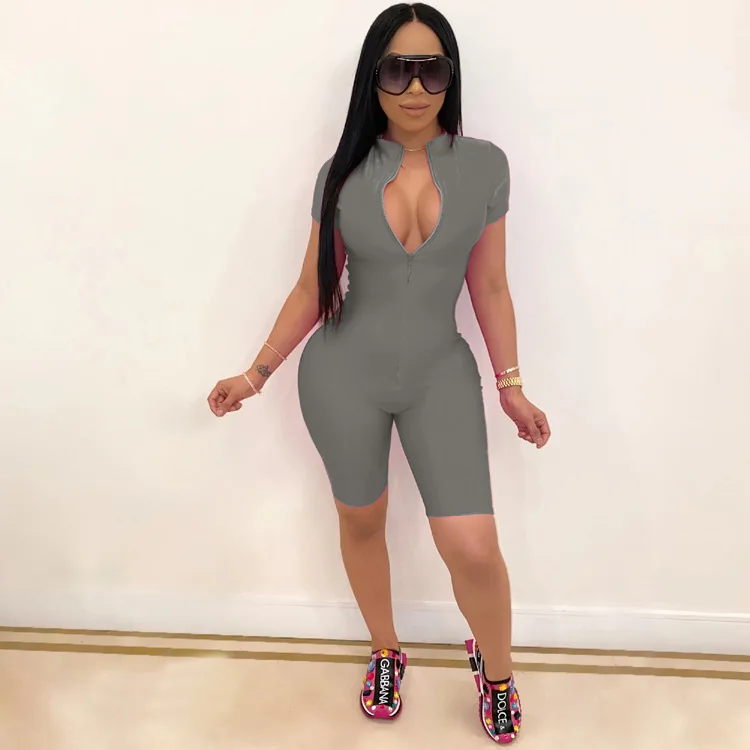 Отзывы о Женский однотонный комбинезон на молнии с коротким рукавом Облегающий до колена
