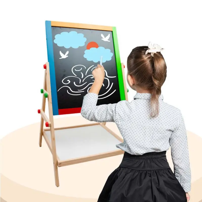 Детский деревянный художественный мольберт, двухсторонний, регулируемая высота, доска для рисования для малышей