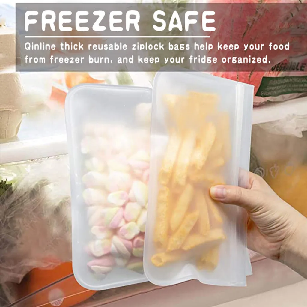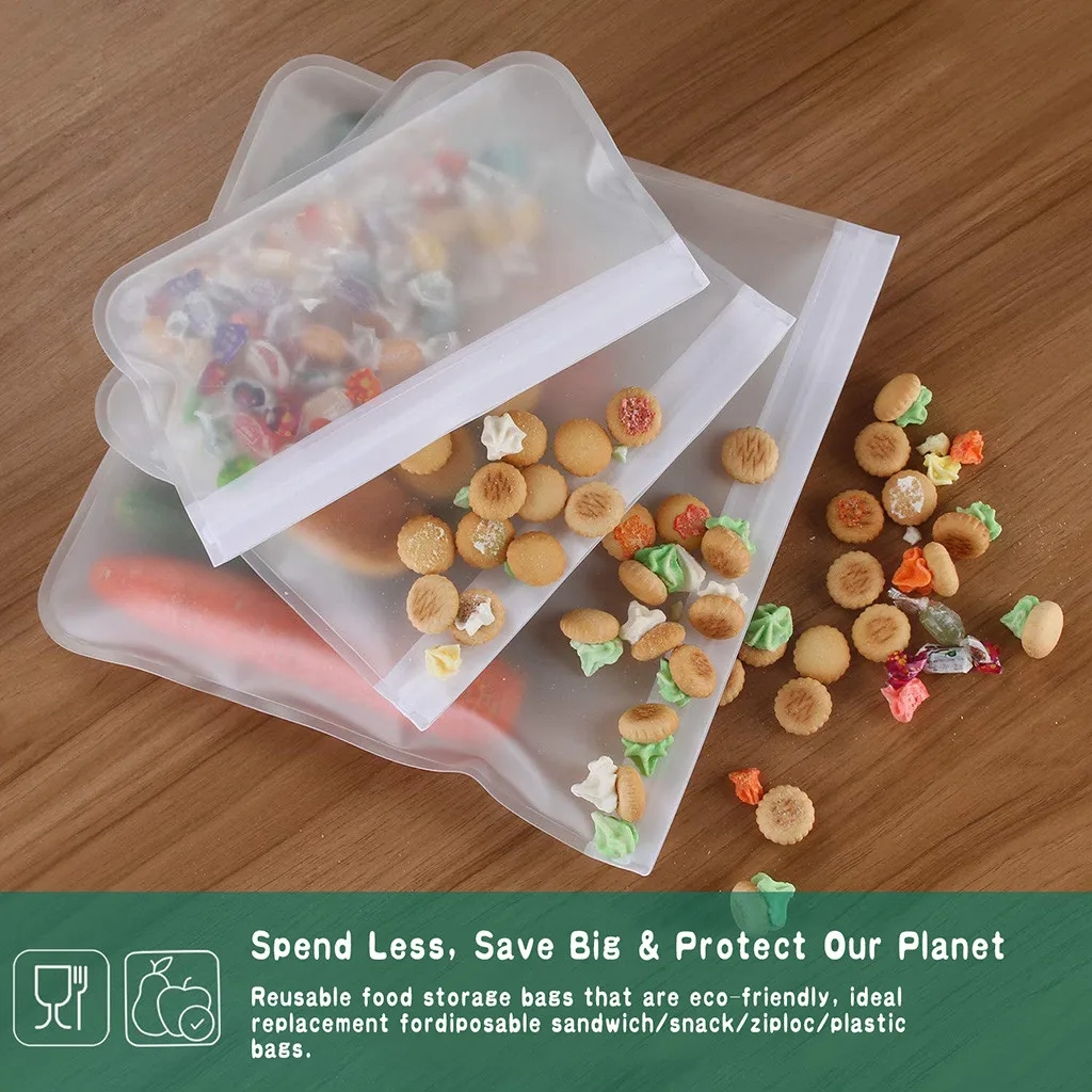 4. Многоцелевые многоразовые пищевые пакеты отлично подходят для маринования мяса, приготовления еды, замороженных продуктов, зерновых, печенья, вязальных материалов, канцелярских принадлежностей и сэндвич-пакетов, закусок, обеда, овощей, фруктов, детская еда, косметика, ювелирный макияж, канцелярские принадлежности, путешествия и многое другое. Прозрачный дизайн позволяет быстро смотреть на содержимое внутри,