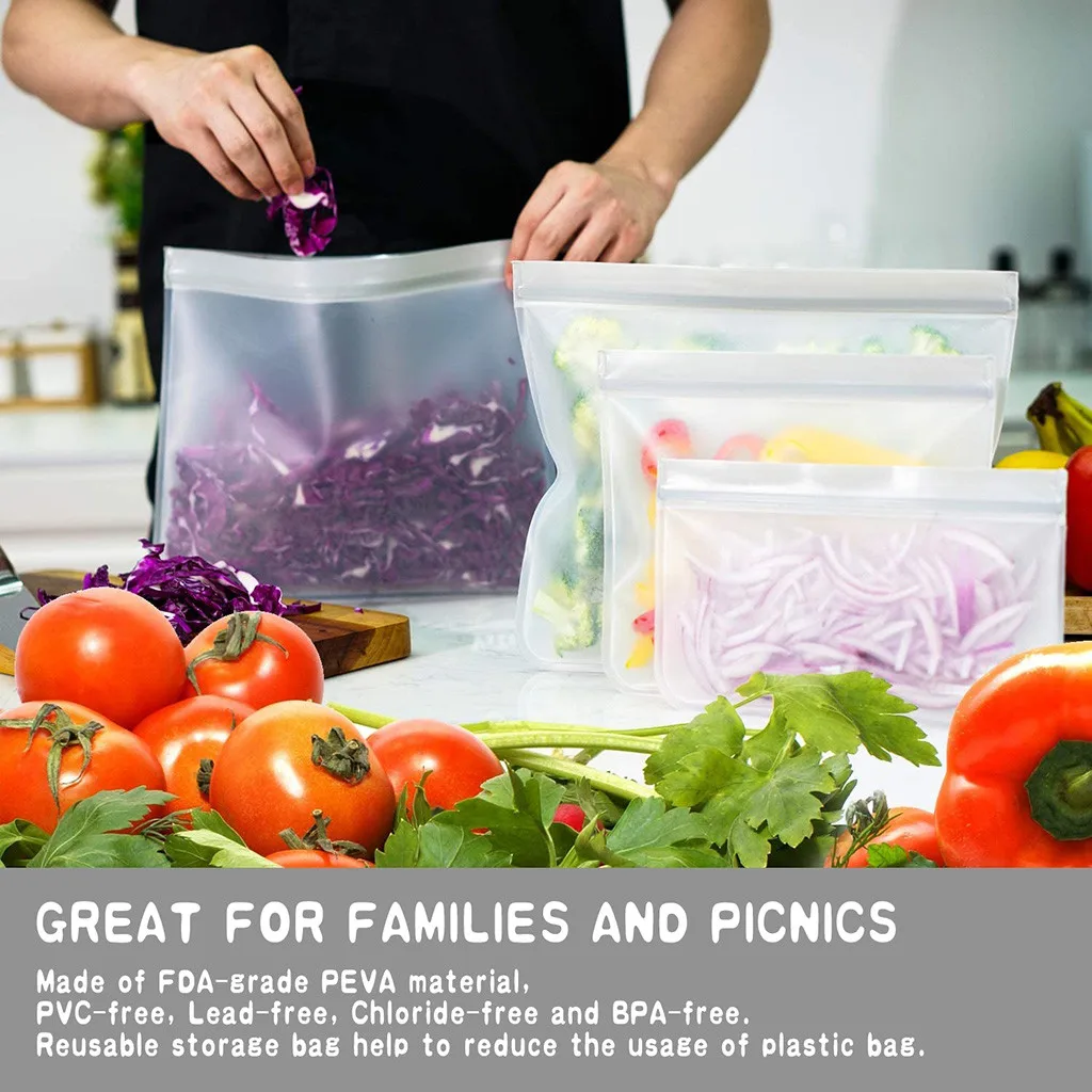 1. Многоразовые пищевые материалы, изготовленные из пищевого материала PEVA, многоразовые пакеты для хранения не содержат BPA, экономят нашу планету и экономят ваши деньги.