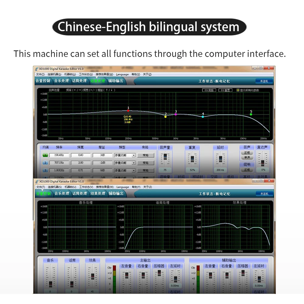 | Особенности | 1. Эта серия продуктов представляет собой беспроводной микрофон с функцией звукового процессора и функцией эффекта караоке, каждая часть функции может быть независимо отрегулирована. 2. Диапазон микрофона может быть синхронизирован с инфракрасным излучением, и есть 200 точек частоты на выбор. 3. Эта машина имеет функцию подключения Bluetooth, которая может воспроизводить музыку через мобильный телефон. 4. С помощью 24Bit шины данных и 32bitdsp. 5. Основной выход регулируется в 5 секциях 6. Вспомогательный разъем выхода имеет 5-полосным эквалайзером Регулируемый изделия из кожи с фильтром нижних частот и фильтром нижних частот. 7. Микрофон канал имеет 9-полосным эквалайзером Регулируемая и обладает высокой фильтром нижних частот. 8. Микрофон оснащен 6-уровневый отзывы функцию подавления, и вы можете выбрать ВКЛ/ВЫКЛ. 9. Панель может задать 6 режимов эффекта, что удобно для пользователей, чтобы позвонить в любое время 10. Эта машина может установить все функции через интерфейс ПК. 11. Эта машина имеет функцию аудиовхода из оптического волокна. |