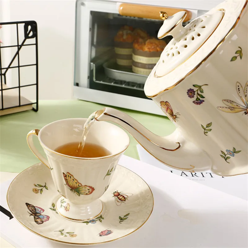 800 мл турецкий Ретро керамический послеобеденный чайный горшок, Дворцовый стиль, Бабочка, цветок, Золотая оправа, английский чайник, кофейная чашка, блюдце для дома