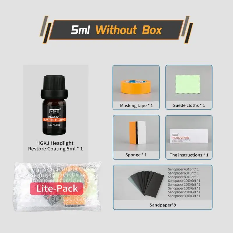Функция: Этот продукт имеет характеристики простой работы, высокой прозрачности и Сильной адгезии. Это оказывает очевидное влияние на удаление царапин, пожелтение, размытие и окисление фар.