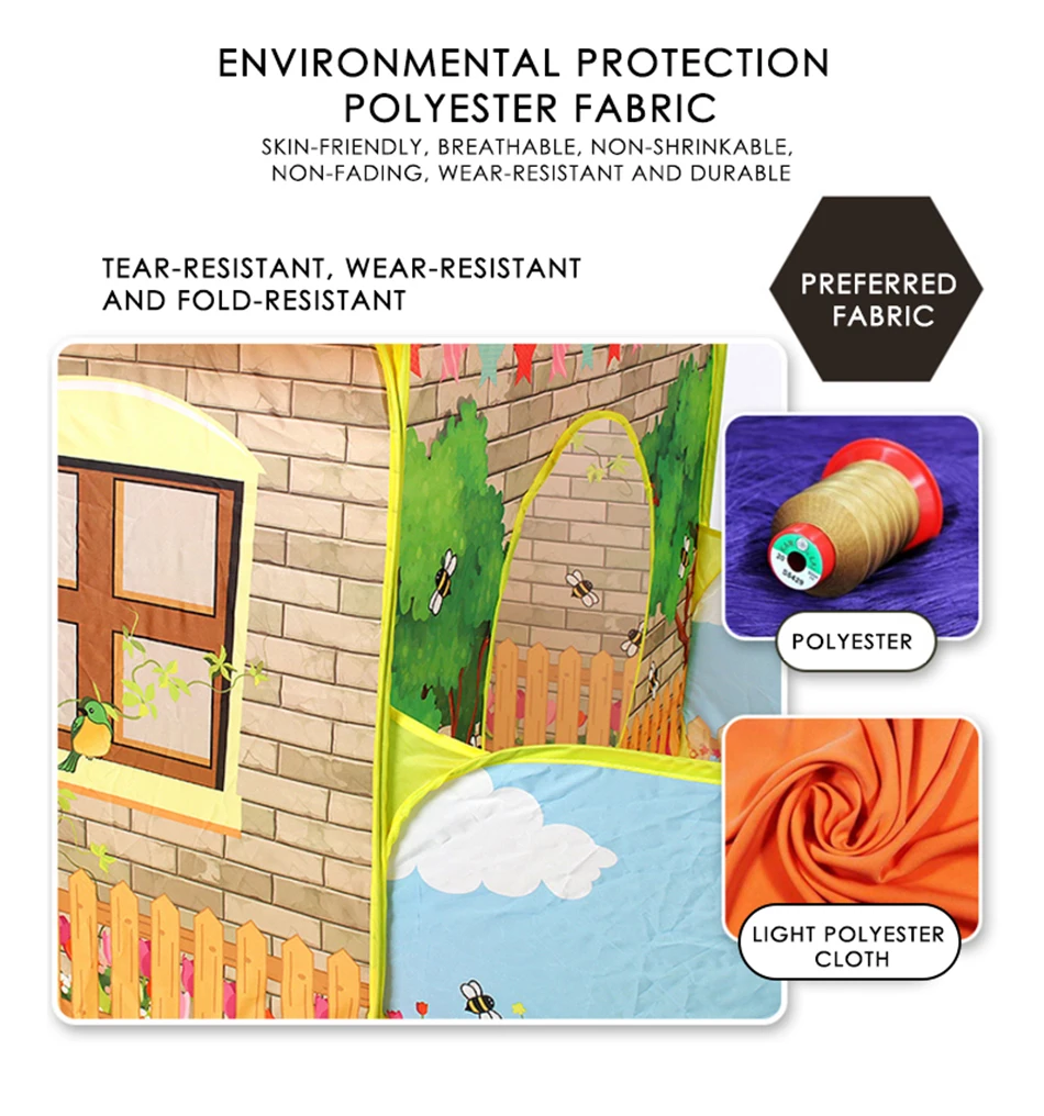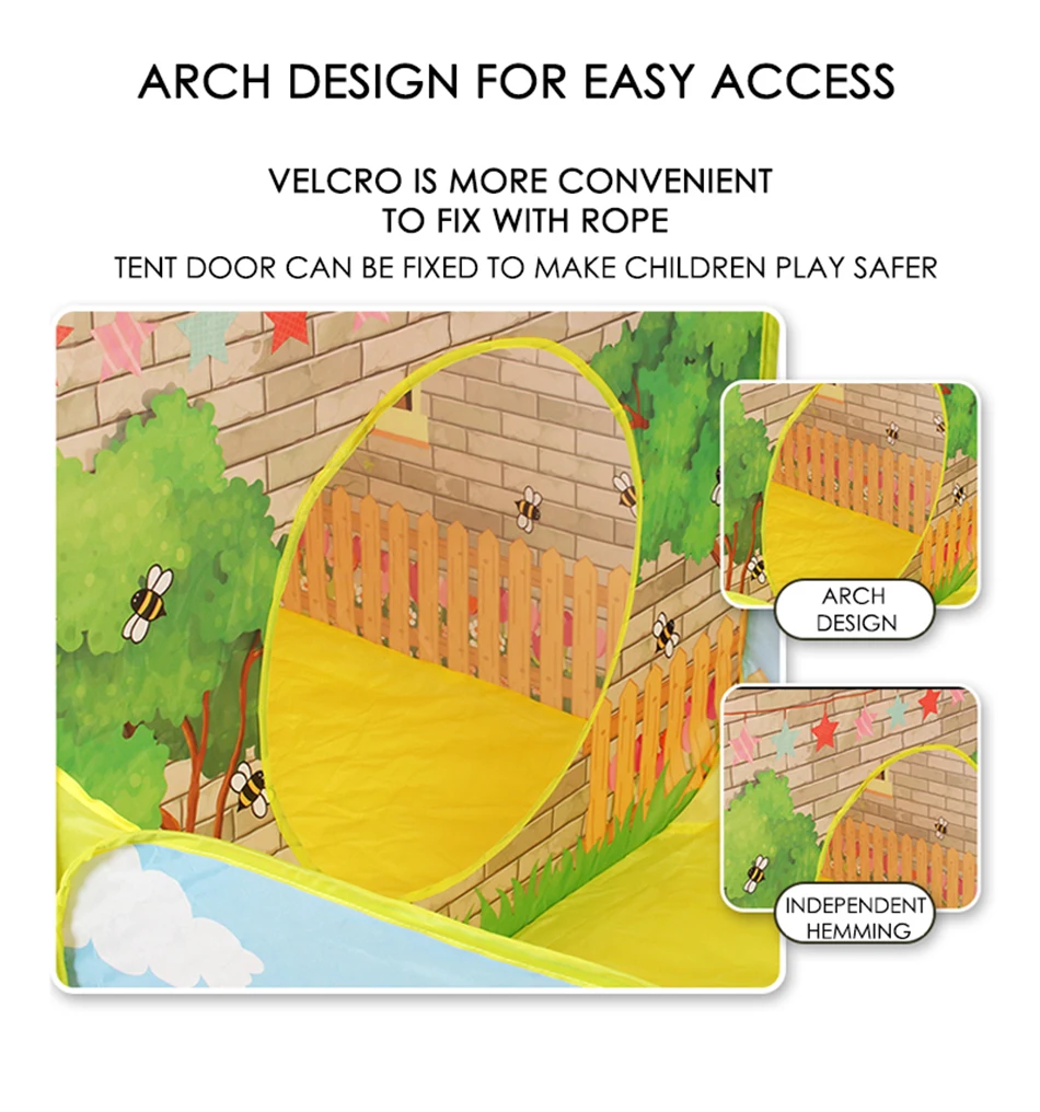 Примечание посылка входит только палатка-домик, мячи в комплект не входят. Детская игровая палатка, маленький домик с садом, подходит для девочек, мальчиков, младенцев, детей и детей, со съемной крышей, для использования в помещении и на улице (желтая) ★Дети влюбляются в наши премиальные палатки мечты для малышей. С палатками и туннелями в нескольких стилях детям понравится превратить этот многоцелевой игровой домик для помещений и улицы в веселую игровую площадку. ★Мягкая ткань и дышащая сетка обеспечивают безопасную и экологичную игровую площадку для детей. ★Портативный, прочный, простой в установке и складной с помощью Легкой сумки для переноски на молнии для удобного хранения. ♥Лучший подарок: Каждый ребенок-Маленький принц или принцесса, детские палатки, без сомнения, подарят им хорошее ощущение. Дети также могут использовать комнатную палатку в качестве игрового домика. Маленькие ребята одержимы этим детским игровым домиком. Дети обожают ползать внутрь и проводить там встречи со своими друзьями. ♥Частное пространство: это палатка для мальчиков вдохновляет на воображение и творческие способности вашего малыша, что обеспечивает пространство для игр, игры в шарики, прятки, читайте вместе с их дорогими родителями и маленькими друзьями. Внутри палатки детской комнаты каждый ребенок хочет иметь секретную основу и их творческий поток возникает без усилий. ♥Свободное время: детская игровая палатка поможет вашему ребенку стать более независимым и социальным, пригласив своих друзей в палатку для малышей, но также поможет себе в свободном личном времени, которое вам так нужно. Иногда вам очень трудно заставить их выйти из новых мини-палатки для детских игр! ♥Специальный дизайн: эти легкие игрушки playschool с водонепроницаемой крышей портативны для переноски в пакете, отлично подходят для использования в помещении или на улице, идеально подходят для дома, заднего двора, парков, дневного ухода и многого другого. ♥Размер и материал: длина во дворе 80 см, ширина 80 см, длина домика 80 см, ширина 80 см, высота 105 см. Специально разработанное идеально размерное Пространство достаточно Вместительное и легко перемещается как для малышей, так и для родителей. Нетоксичная краска, без запаха, безопасна для детей. Особенности: Ваш малыш будет наслаждаться им, это одна из самых удивительных игрушек для детей. Это определенно победитель и после этого подарка они будут обожать вас навсегда! Клуб мальчиков-это их собственная Волшебная земля, личное пространство для них, где их вдохновения будут всплывать намного проще! Они так любят игровую палатку для мальчиков, чтобы играть и даже постоянно спать в ней! Характеристики: -Безопасный для детей материал, прочный и не легко пачкается -Восхитительный дизайн и яркие цветные детские палатки -Достаточно большой, чтобы поместиться 2 малыша вместе с игрушками -Для использования внутри и снаружи помещений