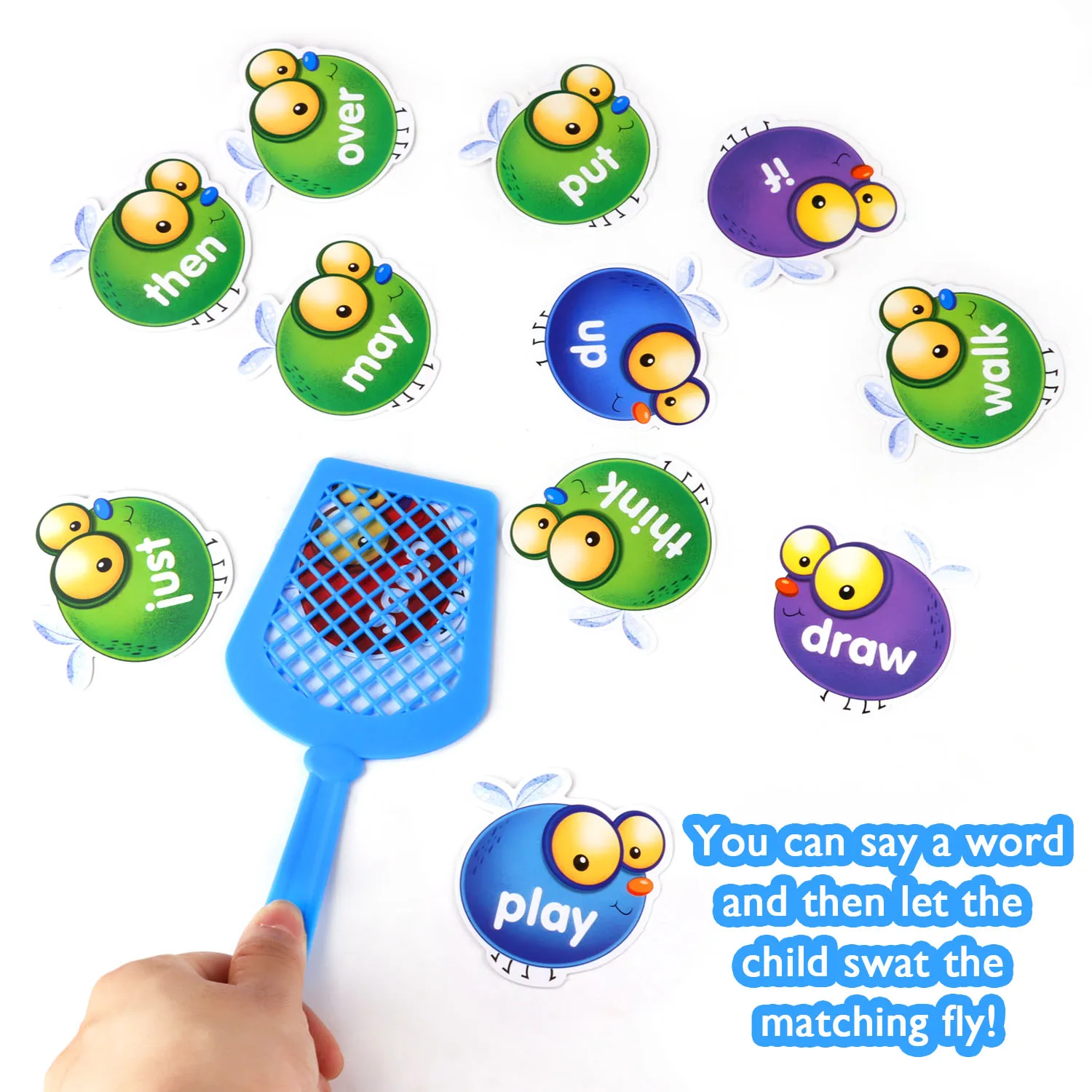 Это отличная игра для детей! Это Забавный способ, чтобы дети привыкли смотреть слова и практиковать их. Забудьте о скучных словах. Дети будут иметь часы веселья, играя в эту игру. Вы можете сказать несколько слов, а затем дать ребенку помахать на подходящую муху, они подумают, что они просто играют, но родители и учителя узнают, что они на самом деле учатся