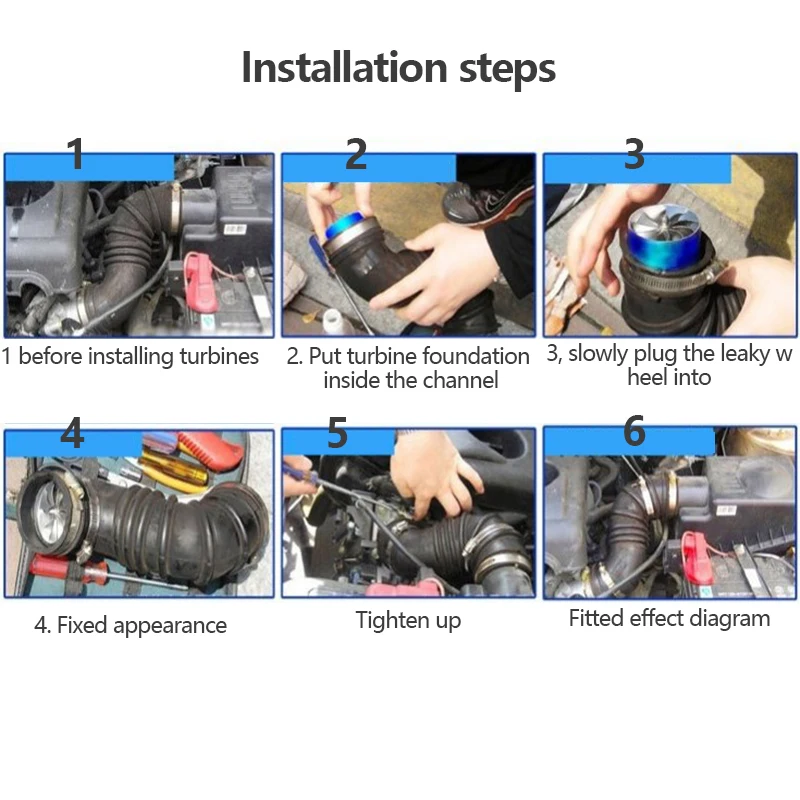 Он устанавливается в воздухозаборном шланге между воздушным боксом и дроссельным клапаном оригинального транспортного средства. При установке, это зависит от диаметра воздушного впускного шланга оригинального транспортного средства и толщины резинового воротника самого колеса питания,
