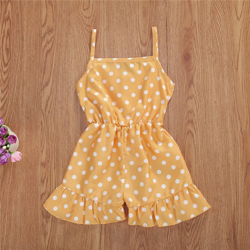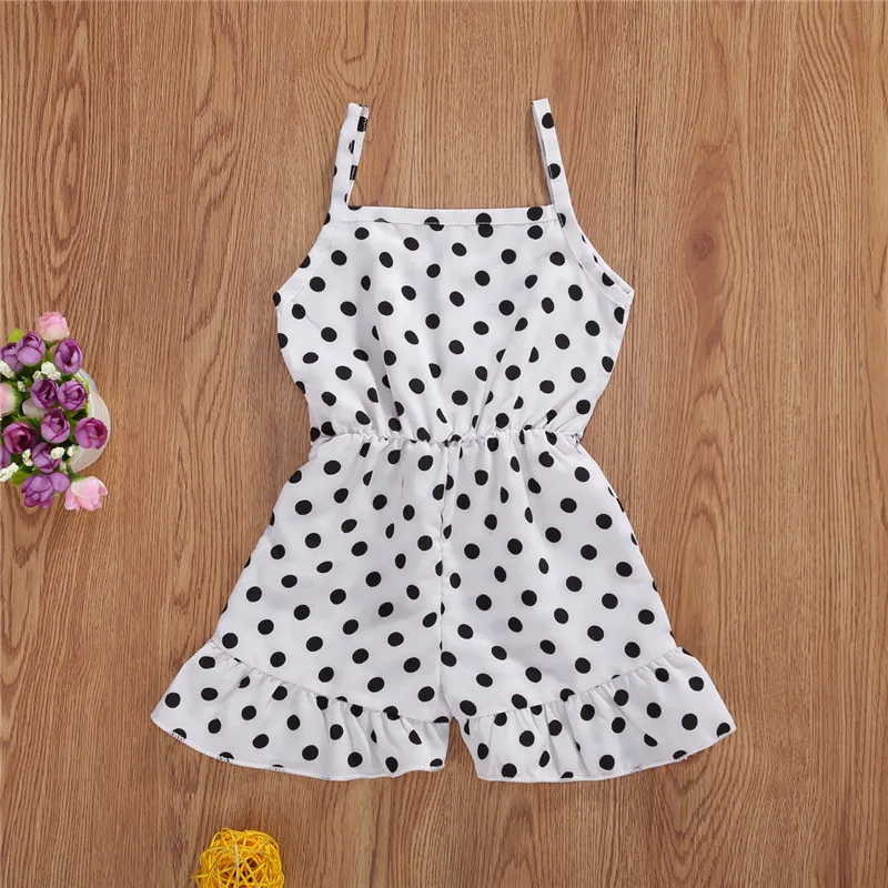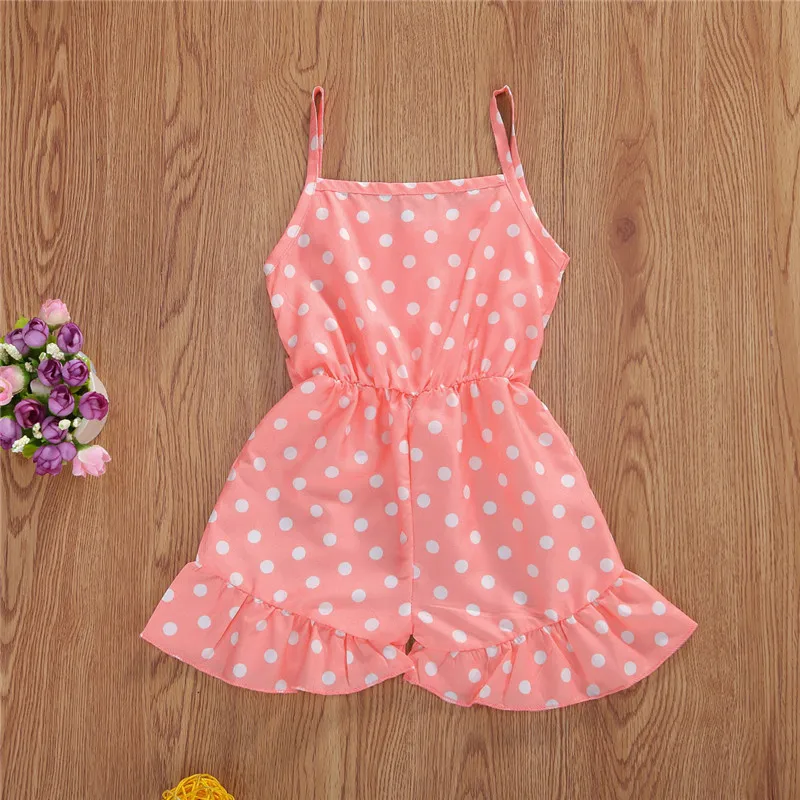 Emmaaby/Комбинезоны без рукавов в горошек для маленьких девочек комбинезон для детей от 1 года до 6 лет, детский летний Повседневный Свободный комбинезон с оборками