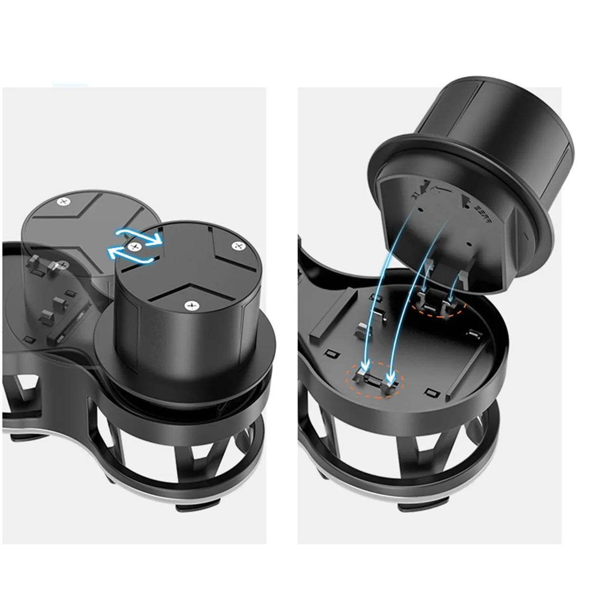 self-adaptive clamps hold your cups firmly without shaking during driving or noise caused by collision between cup and cup holder wall