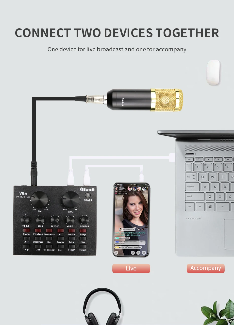 Профессиональная внешняя звуковая карта аудио интерфейс для записи компьютера живой DJ звуковой миксер телефон голосовой чейнджер с Bluetooth