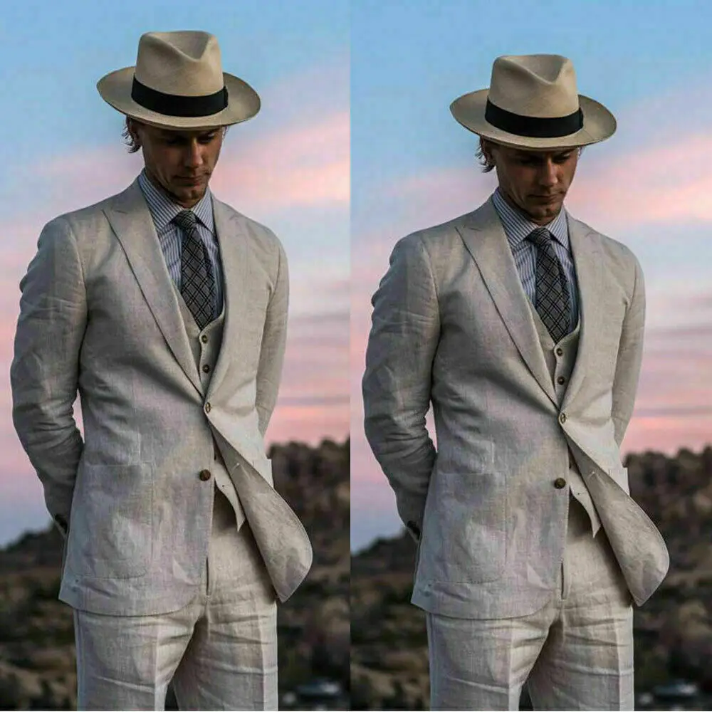 Отзывы о Светильник серый летний льняной мужской костюм подходит для свадьбы жениха