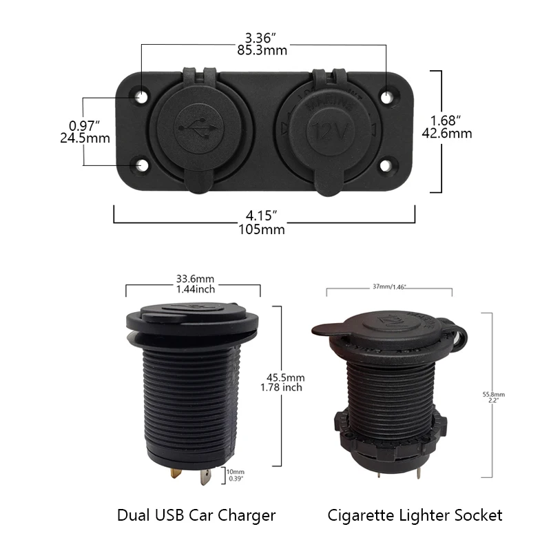 Два выхода USB: 5 В 2.1A + 5 В 1A/розетка для автомобильного прикуривателя