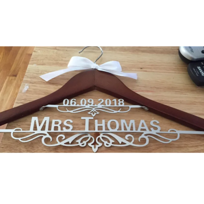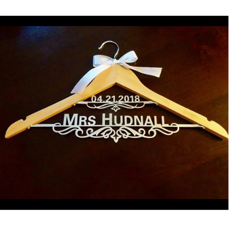 Отзывы о Деревянная вешалка для свадебных платьев с датой Mrs бантом подарок подруге