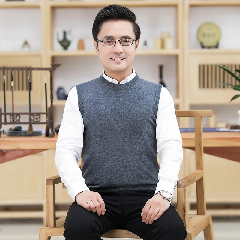 Отзывы о Мужской шерстяной свитер без рукавов офисный однотонный вязаный жилет с круглым