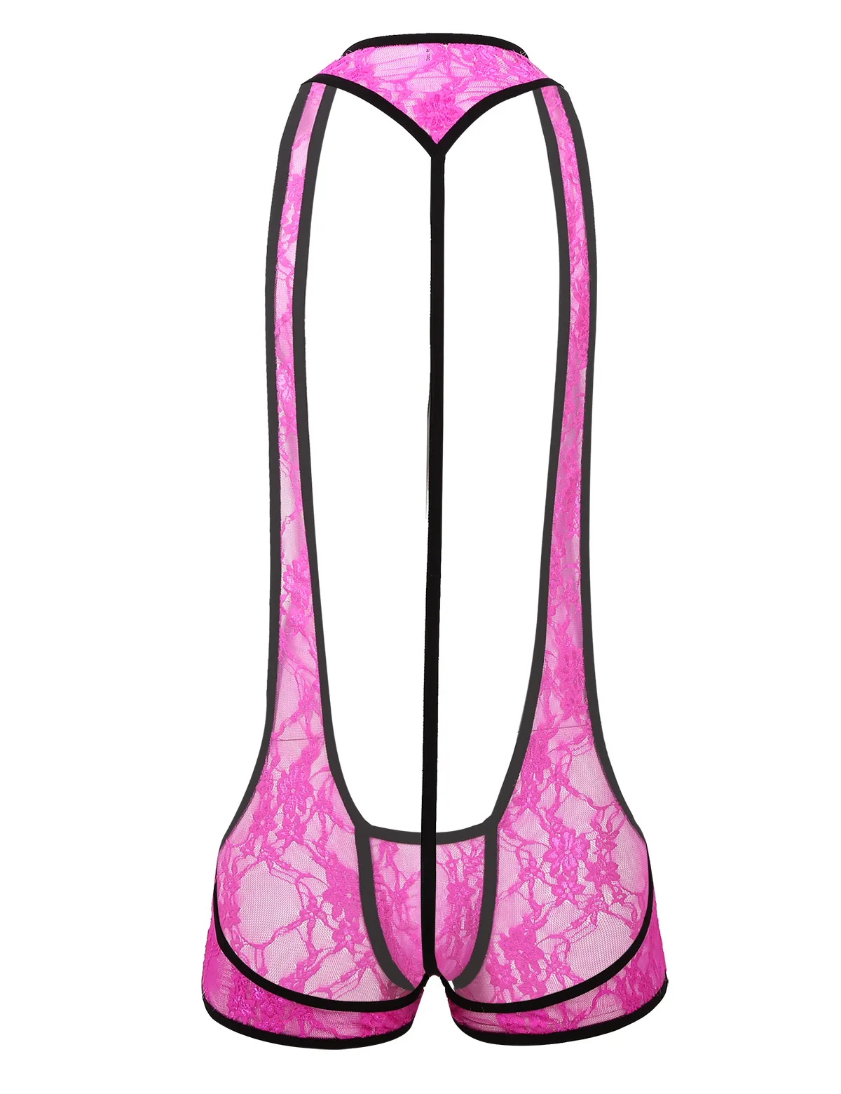 Мужское цельное прозрачное Прозрачное Кружевное боди для Реслинга спереди и с открытой спиной, боди для реслинга, нижнее белье