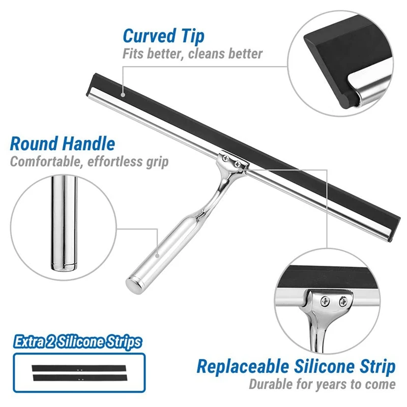 Шракель из нержавеющей стали для душа 31 см душевой скребк без сверления окна Съемник с настенной вешалкой 2 силикона