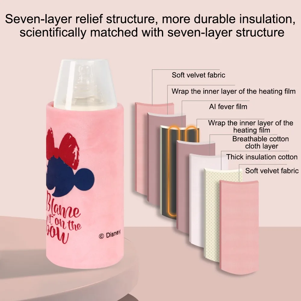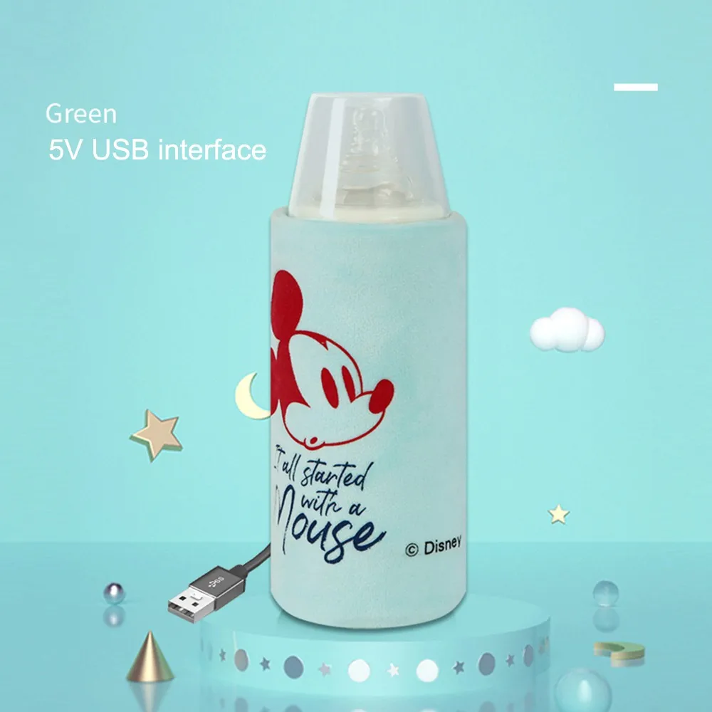 Disney USB молока воды теплее бутылка отопление крышка коляска мешком-термосом Портативный термостатический бутылки из-под молока, изоляция