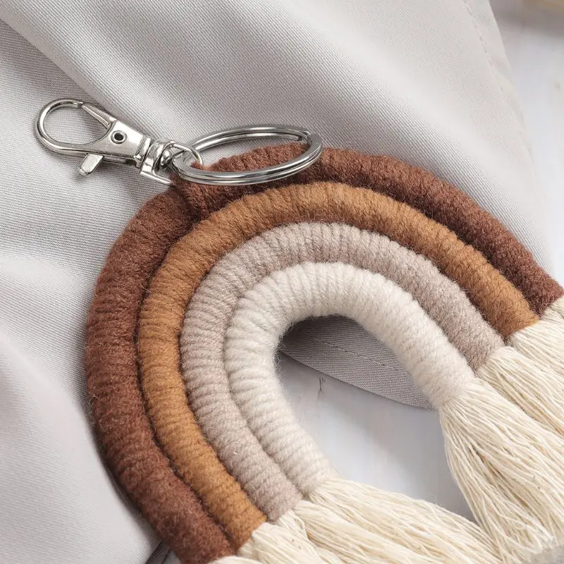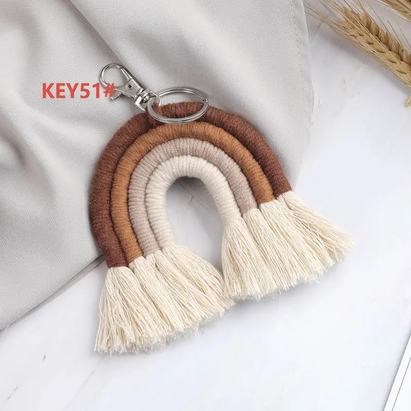 Плетеные радужные Брелки для женщин ручной работы в стиле бохо, брелок для ключей, макраме, сумка для автомобиля, Висячие ювелирные изделия, подарки