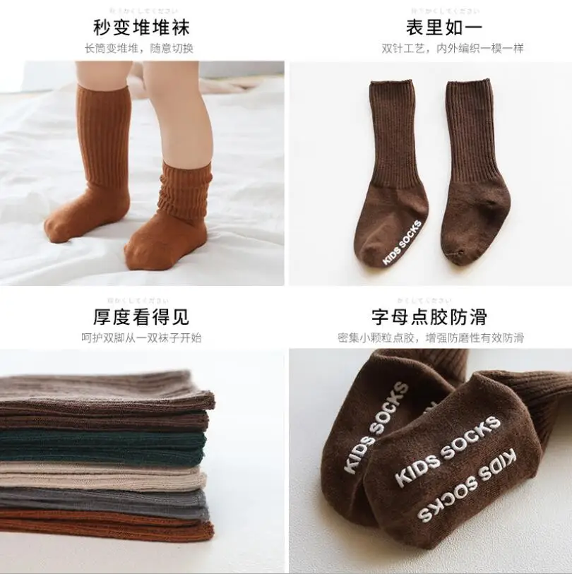 Дышащие хлопковые носки для детей от 0 до 5 лет нескользящие носки для малышей, гольфы для мальчиков и девочек Однотонные Детские гетры в полоску