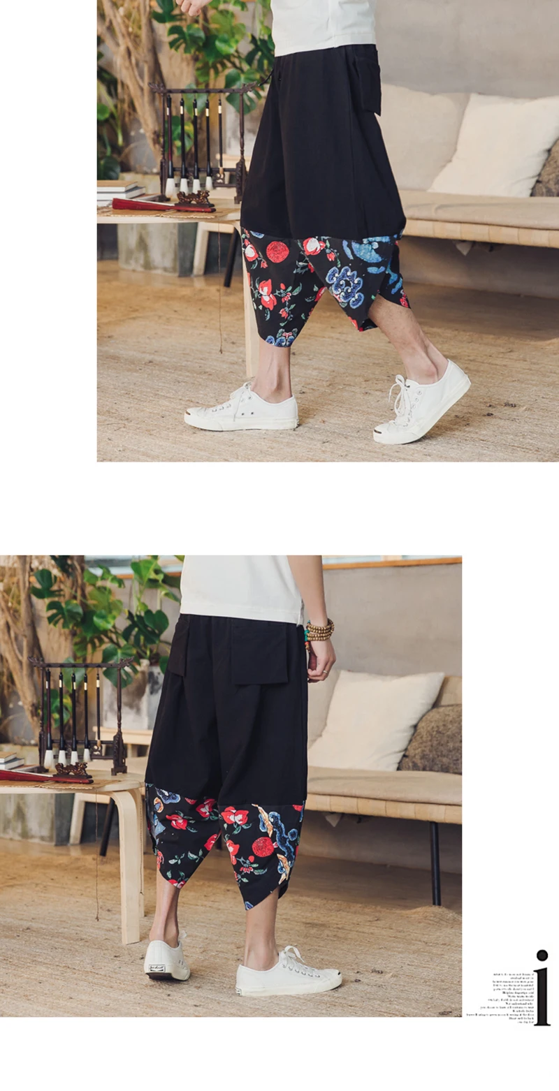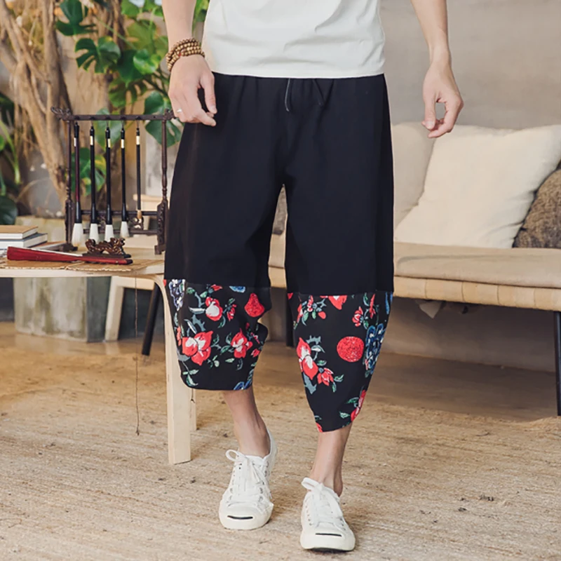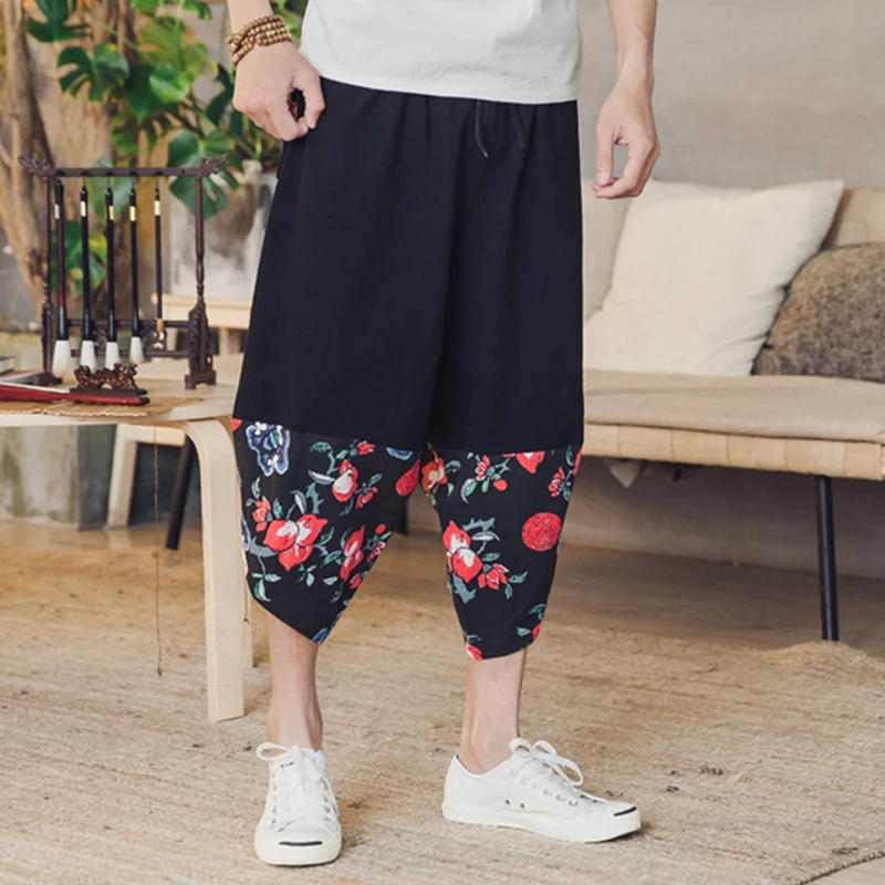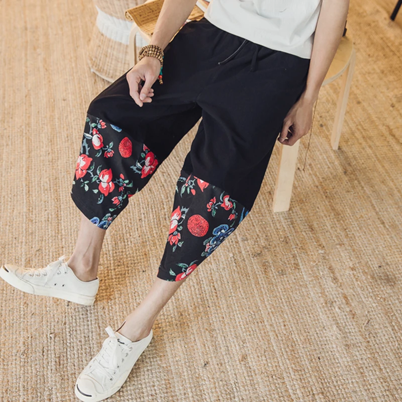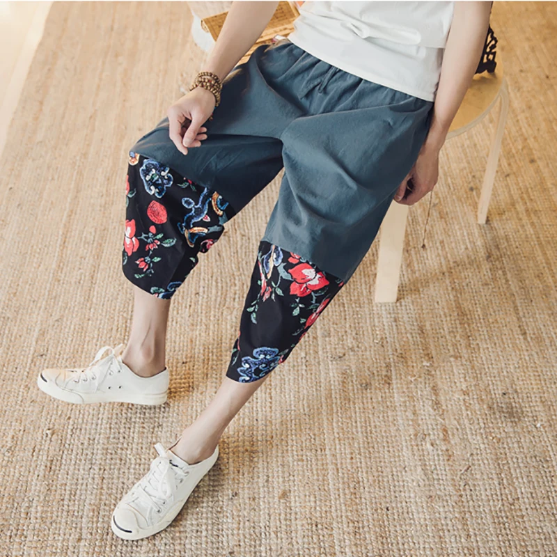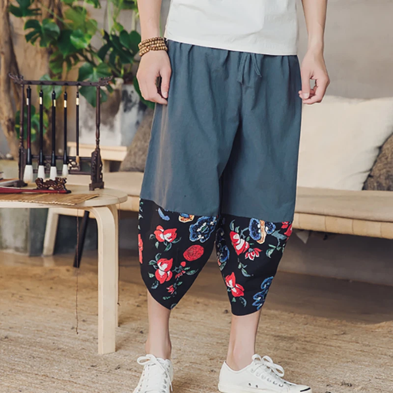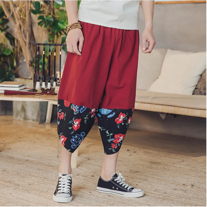 Мужские брюки повседневные китайские Retrp 2020 осенние и летние мужские свободные хлопковые и льняные брюки с морковкой большого размера льняные брюки с 7 точками